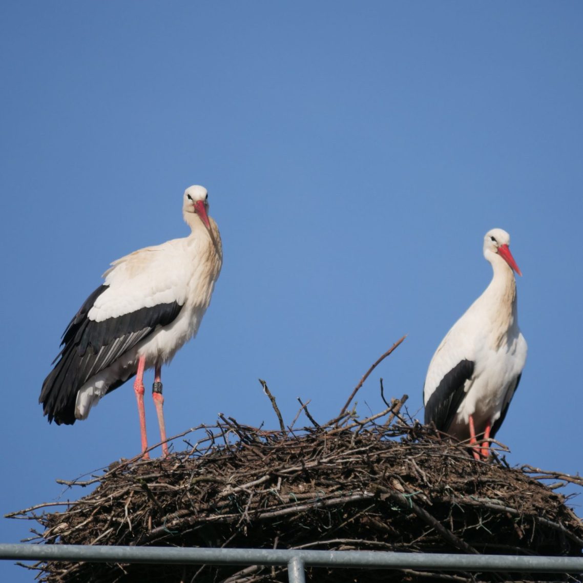 Zurück aus dem warmen Süden haben ein Storch am 13. Februar und der zweite Storch am 24. Februar wieder ihren Platz auf dem Schlauchturm eingenommen. Nach frostigen Temperaturen kehrt mit ihnen nun höchstwahrscheinlich der Frühling ein. Denn nach der germanischen Mythologie ist der Storch ein Frühlings- und Glücksbote. Seine Anwesenheit zeigt ein intaktes Lebensumfeld an.